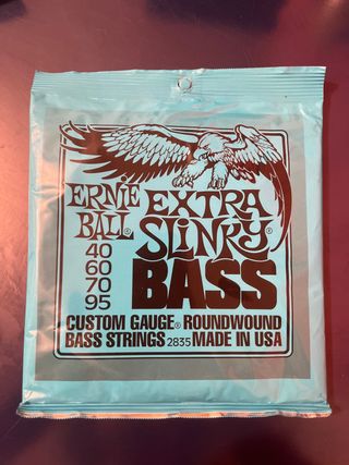 Juego de cuerdas para bajo eléctrico Ernie Ball. Tengo 4 paquetes, si los quiere comprar todos son 85€ - Modelo: Extra Slinky - Calibres: 40, 60, 70, 95 - Tipo: Roundwound - Fabricadas en EE. UU.