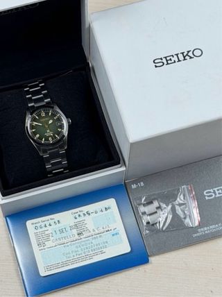 Reloj Seiko Baby Alpinist SPB155J1 Verde. PVP 750€ - Calibre 6R35. reserva de marcha 70 h. - Esfera verde 38mm diametro. - Resistente al agua hasta 20 bares.