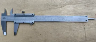 Calibrador de metal para mediciones precisas. - Fabricado en metal resistente. - Diseño clásico de pie de rey.