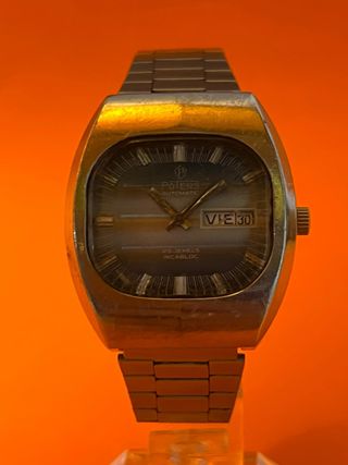 Reloj Potens automático del año 1970. Modelo estilo TV vintage. - Calibre suizo automático 🇨🇭 - Esfera en color celeste reflectante con doble calendario - Caja de acero inoxidable de 36,5mm sin corona x 40 mm -Revisado funciona ✅ PAGO CON BIZUM ENVÍO GRATIS, PAGAS LO QUE VES ‼️ MUCHOS MÁS RELOJES ÚNICOS EN MI PERFIL clave: reloj de pulsera, longines, zenith, omega, tudor, tag heuer automático cronógrafo, certina, de hombre, reloj antiguo, años 60, 1970, reloj de pulso, reloj de colección, muy antiguo