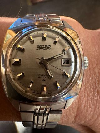 Este es un reloj de pulsera automático hi-beat vintage para mujer, conocido por su movimiento de alta frecuencia de 17 joyas. A menudo se le asocia con la línea de relojes de buceo de la época debido a su diseño de caja y corona similares a modelos más grandes como el 6105, lo que le ha valido el apodo de "mini apocalypse" o "lady diver". Modelo de Referencia: 2205-0750. Mecánico automático (cuerda automática y manual) calibre 2205A, 17 joyas. Movimiento Hi-Beat (alta frecuencia), lo que le otorga una mayor precisión. Necesita repaso o puesta a punto pues lleva mucho tiempo sin usar. Estado ver fotografías. Envío por Correos