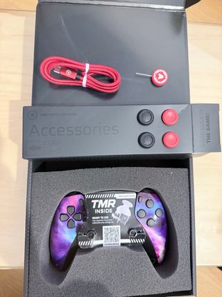 Mando TMR Pro con un diseño galáctico único. Listo para usar, tus joysticks han sido calibrados y configurados. - Diseño inspirado en galaxias. - Botones de alta respuesta.