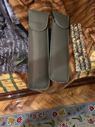 Productos NO ESTRENADO perfectos para practicas de lanzado de precision o remate de caza. Son de tres tramos en cada funda (verde militar) enrroscables, ligeras y bien calibradas SIN PUNTAS. Las fundas traen cincha para llevar colgado al hombro o a la espalda. Agujero para montar punta en cada una NO INCLUIDAS) ya que esto es algo muy particular y cada uno tiene sus gustos en formas y pesos. Peso de la lanza montada 1,8 kilos aprox para que con punta puesta no supere los dos kilos. El PRECIO ES PARA LAS DOS ya que se VENDEN UNICAMENTE JUNTAS. Cosas que quito tras limpiezas y sin uso