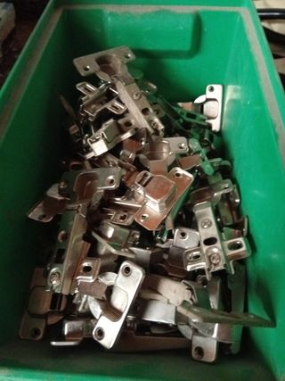 Se venden 30 bisagras para puertas de madera. Están en buen estado, aunque algunas presentan ligeras marcas de uso. - Ideales para reparar o instalar puertas. - Material metálico resistente. - Color plateado.