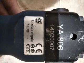 Lijadora angular YA 806 con una velocidad de 10000 rpm.Funciona con aire Funciona perfectamente, está como nuevo, muy poco uso , se vende porque ya no se usa - Modelo: YA 806 - Velocidad: 10000 rpm - Tipo: Lijadora angular