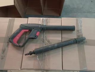 Pistola de agua a presión con lanza. - Mango ergonómico con detalles en rojo. - Lanza desmontable para mayor versatilidad.