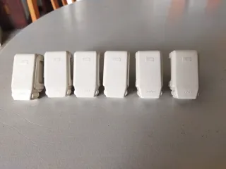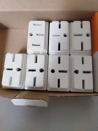 Set de siete bases de enchufe de color blanco. - Diseño trifásico. - Ideales para instalaciones eléctricas.