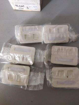 Se venden 6 placas centrales dobles para datos. Son de color blanco y tienen un diseño moderno. - Pack de 6 unidades. - Doble ranura para datos.