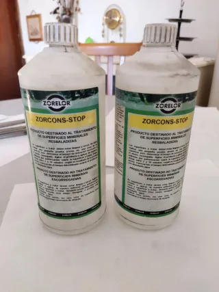 Producto destinado al tratamiento de superficies minerales resbaladizas. - 2 Envase de 1 litro. - Marca: Zorelor. - Modelo: Zorcons-Stop.