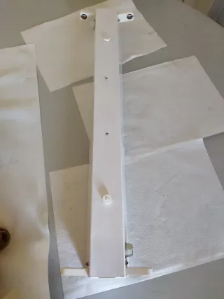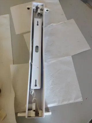Regleta fluorescente doble de color blanco. - Diseño alargado. - Dos puntos de fijación en la parte superior. - Base con soportes.