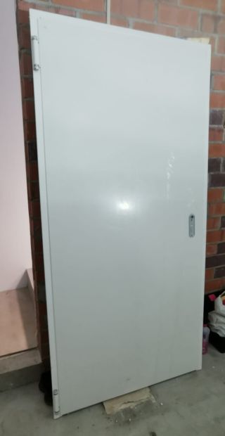 Puerta cortafuegos de alta seguridad, modelo RF60. Apertura a la derecha. Medidas: 1000 mm de ancho x 2050 mm de alto. Nuevo. Nunca se ha instalado. Se compró un tamaño incorrecto. Puerta Corta-Fuego de una hoja, de fácil instalación y mantenimiento. Su hoja está conformada con dos planchas de acero galvanizado de 0.6mm, ensamblada sin soldaduras. Con un espesor de 62mm, en su interior aloja una combinación de materiales aislantes resistentes al fuego que le otorgan una clasificación EI2 60 C5.Disponible únicamente en una hoja, monta 2 bisagras con marcado CE y un bulón antipalanca entre ellas.