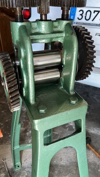 Laminadora para hilo y chapa, ideal para trabajos de joyeria Completamente restauradas y funcionando a la oerfección - Construcción robusta en color verde. - Incluye manivela para operar. - Rodillos para laminar metal. Precio por unidad