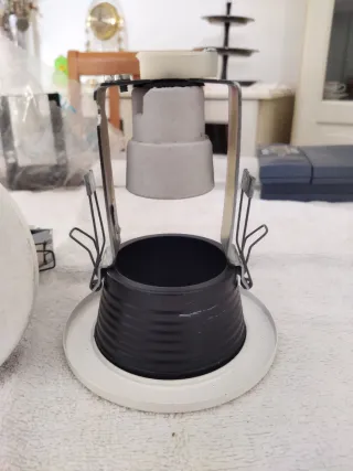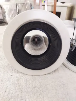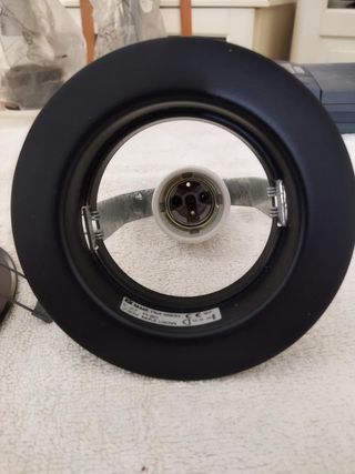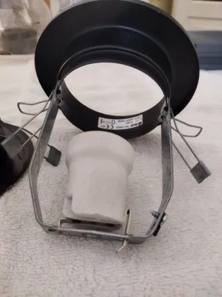 Se venden dos soportes para bombillas halógenas de empotrar. - Color blanco. - Diámetro aproximado de 23 cm.