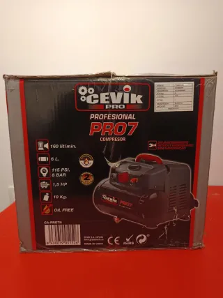 Compresor de aire Cevik PRO7, modelo profesional. - Sin mantenimiento. - 1.5 HP. - Capacidad de 6 litros. - Incluye varias instrucciones en diferentes idiomas. - Aún en Garantía. No hago envíos.