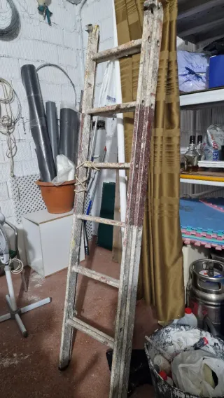 Escalera de aluminio. Cada altura son 2 metros, el enganche para ponerle la segunda altura esta rota por lo cual hay que amarrarla, hay que recogerla en umbrete - Material: Aluminio. - Diseño robusto.