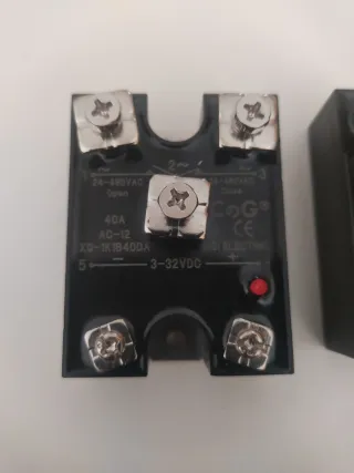 Se venden dos relés de estado sólido, ideales para control industrial. - Capacidad de 40A. - Voltaje de control de 3-32VDC. - Voltaje de salida AC de 24-480VAC. - Marca CQC. - Certificación CE. -Precio 18€ cada uno. - Negociable