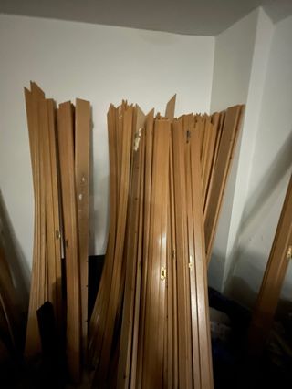 Lote de jambas de puertas de madera, ideales para proyectos de carpintería o renovación. - Material: Madera - Color: Tono natural de madera