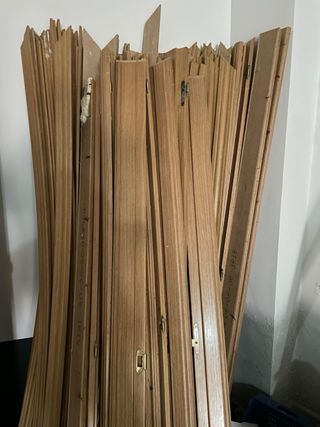 Se venden listones de madera de diferentes tamaños. Estuvieron puestos una sola semana, están perfectamente, alguno tiene algún agujero de la unión con el otro que se puede tapar perfectamente con masilla. Fue una barandilla para el patio que hicimos. El precio es por el lote. - Listones de madera maciza. - Ideales para proyectos de bricolaje o construcción.
