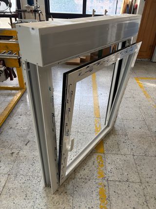 Ventana oscilobatiente de una hoja de aluminio RPT, color blanco, con persiana de aluminio termico, con vidrio 3+3/16/4 MATE BLANCO. Medidas: 1100mm (ancho) 1255mm (altura con cajon) VENTANA NUEVA SIN ESTRENAR, NUNCA SE HA LLEGADO A INSTALAR.