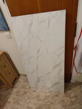 Encimera laminada con un elegante diseño efecto mármol. Ideal para renovar tu cocina o baño. Tengo solo un trozo sobrante de 63 x 125 x 13mm grosor. Con el plástico de fábrica aun. Es un sobrante de una cocina pequeña. Comprado en Leroy Merlin hace dos meses. - Acabado blanco con veteado gris. - Material laminado resistente.