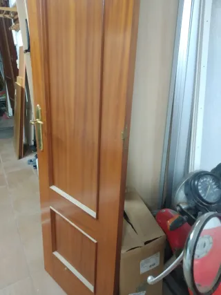 Se venden tapetas de madera para puertas. Son piezas de carpintería con un acabado en tono madera. - Material: Madera - Color: Tono madera Sapeli Estan cortadas en inglete. Las largas hacen 219cm Las cortas miden 88 cm Largas hay 7 del lado izquierdo y 4 del lado derecho Cortas hay 4 Las largas se venden a 2€ cada una Las cortas a 1€. Se puede entregar en Barcelona