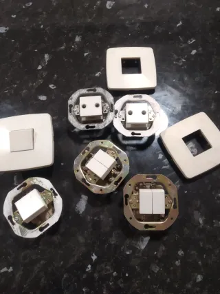 Lote de mecanismos para instalaciones eléctricas de la serie Simon 32. Incluye varios interruptores y marcos. - Mecanismos de la serie Simon 32. - Varios interruptores de uno y dos polos. - Marcos de diferentes tamaños y formas. Se vende por 5€ cada uno. El conjunto mecanismo y marco. Se puede entregar en Barcelona