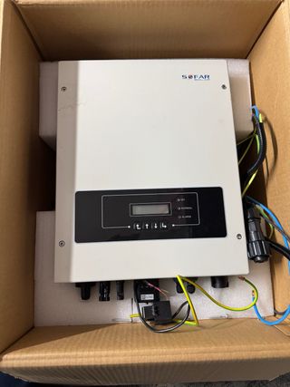 Solo tiene dos años. Motivo de venta: actualización a inversor más potente (para 20 placas y 3 baterías). Se puede conectar a placas solares o realizar AC-coupling (para conectar baterías).