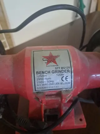 Esmeriladora de banco Star Tools. - Modelo STT BG125. - Disco de 125mm. - 2950 RPM. - Potencia de 120W. - Voltaje 230V-50Hz.