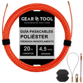 Guía pasacables profesional de poliéster trenzado monofilamento. - Longitud: 20 metros. - Grosor: 4,5 mm. - Incluye accesorios para su uso.