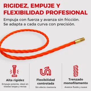 Guía pasacables profesional de poliéster trenzado monofilamento. - Longitud: 30 metros. - Grosor: 4,5 mm. - Incluye accesorios.