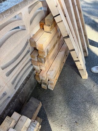vigas de madera de pino, ideales para proyectos de construcción o bricolaje. - Material: Madera de pino. - Cantidad: mucho Están situados en la zona de Faura. 1.20x6x6--2€ 1.205.5x6--2€ 2.40x5.5x6--4€ 2.40x10x10--6€