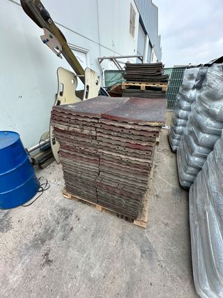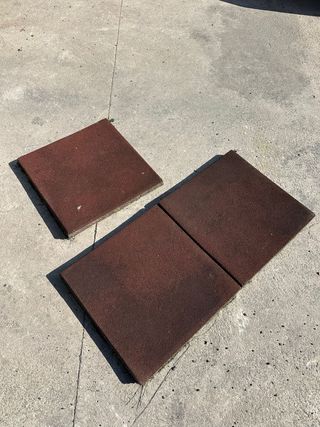 Se venden losetas de caucho en color marrón rojizo, ideales para exteriores. Lo único que tienen césped pegado debajo. Precio por loseta me queda 28m2 - Medidas: 50x50 cm.
