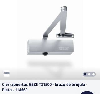 Cierrapuertas GEZE TS1500 en color plata. - Modelo TS1500. - Acabado en plata. - Incluye brazo de compás. Incluye accesorio de placa de montaje para puertas GEZE 029682