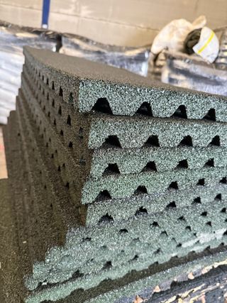 Se venden losetas de caucho, ideales para gimnasios o zonas de entrenamiento. Están como nuevas, precio por m2 tengo 14m2 - Tamaño 100x50 - Material: Caucho. - Diseño con estructura interna. - Color: Verde/Negro.