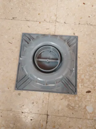 Sumidero de plástico gris, con rejilla circular. - Material: pvc - Color: Gris. - Diseño: Rejilla circular.