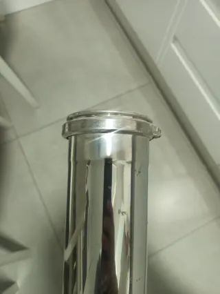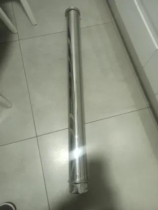 Tubo convesa de acero inoxidable,para salida humos estufa de pellets ‼️SIN LA JUNTA DE GOMA 1 metro 80 mm diámetro Sin usar, me ha sobrado de una instalación. - Material: Acero inoxidable. - Forma: Cilíndrica. - Acabado: Brillante.