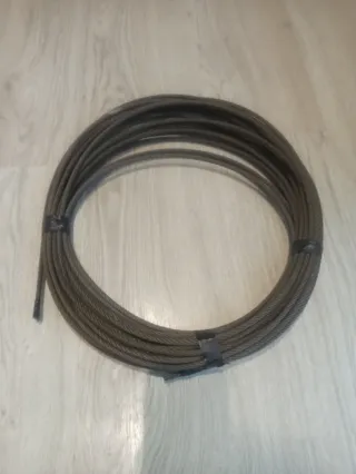 Cable de acero 6mm, algo masde 22 metros . Compuesto de 5 cables 3 kg de peso aproximadamente. - Material: Acero. - Color: Gris oscuro.