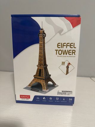 Puzzle 3D de la Torre Eiffel de CubicFun. Un modelo detallado de una de las maravillas arquitectónicas del mundo. - Incluye 39 piezas. - Dimensiones: 22 x 20.5 x 47 cm.