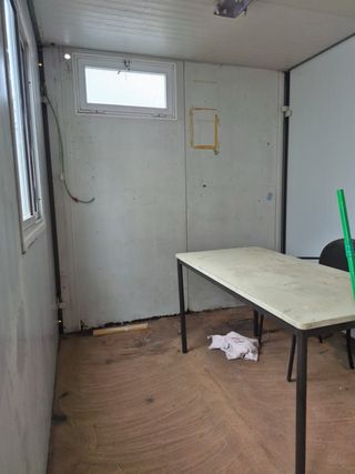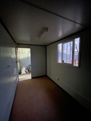 Caseta de obra prefabricada, ideal para almacenamiento o como oficina temporal. - Estructura metálica. - Paneles sándwich. - Ventanas con persiana. - Puerta de acceso. - diafana - doble cubierta - medidas 7.20*2.40 m - electricidad - suelos de tarima flotante