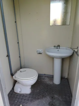 Caseta de obra con 2 baños y 2 duchas y 2 lavabos
