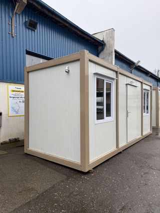 Caseta prefabricada de 6 metros de largo, con lavabo incorporado. Ideal para obra o almacenamiento. - Medidas: 6 metros de largo. Para mas información, pongase en contacto por llamada ☎️618041143