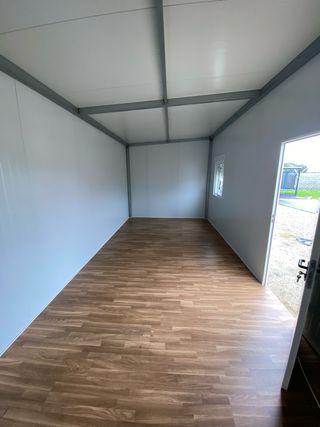 Caseta modular de 20m² lista para instalar es desmontable entonces podrás llevarla a sitios reducidos o de difícil acceso Ideal como oficina almacén casa de finde semana . -Suelo aislado ninguna lo trae. - Estructura metálica resistente. - Paneles de aislamiento. - Ventanas de doble cristal y presianas -Medidas fuera de lo normal 3.20 x 6.20 -2 ventanas + puerta -Tarima pvc Estructura sola 3000€ Caseta entera 7000€ Caseta contenedor container casa prefabricada mobil home Camper