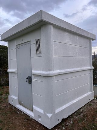 Caseta prefabricada de hormigón de 3x2,55 y 2,90 de alto, muy bien terminada y muy robusta paredes de 8 cm de anchura puerta incluida es super aislante ideal para trastero, baño, almacén...