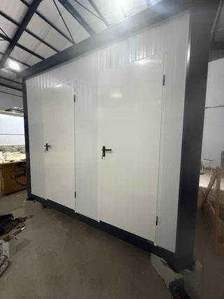 Conjunto de casetas prefabricadas modulares, ideales para diversas aplicaciones. - Estructura metálica. - Paneles de aislamiento. - Puertas de acceso. - Ventanas.,
