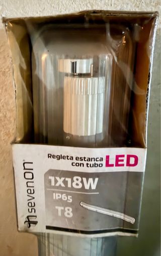 Regleta estanca con tubo LED de 1x18W, diseñada para resistir al agua. - Modelo: 1x18W T8 - Tipo de casquillo: T8 - Protección contra agua Precio por unidad: 6€ Tengo 5 unidades.