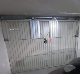 Puerta de garaje basculante de marca Roper.Manual. Medidas: 2,20 cm de alto 3,40 cm de ancho La puerta tiene 2 cerraduras adicionales a los lados para mayor seguridad. Transporte y montaje no incluido.