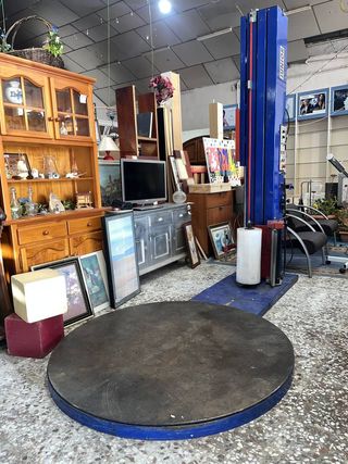 ✅ Ref. C9927 Envolvedora de palets diseñada para el embalaje y estabilización de cargas mediante film estirable. Se trata de una máquina industrial que cuenta con una plataforma giratoria de 150 cm de diámetro y una altura total de 261 cm, lo que permite trabajar con palets de gran tamaño. Su estructura es robusta y está pensada para un uso intensivo en almacenes y zonas de logística. Se encuentra con desgaste del uso pero en general está en buenas condiciones. 📐 Medidas (ancho x alto): 150x261cm. Financia tus compras de forma inmediata. Visita nuestra web Cardiffstore o nuestra tienda en Catral (C/Alfafar); Llámanos