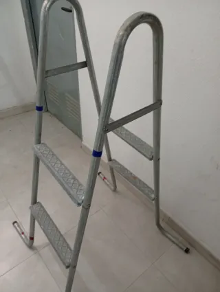Escalera de aluminio de cuatro peldaños. Es ligera y fácil de usar. - Material: Aluminio - Número de peldaños: 4