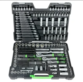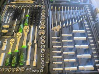 Maleta de herramientas JBM completa, ideal para reparaciones y mantenimiento. - Incluye llaves fijas, de vaso, puntas y destornilladores. - Carracas de diferentes tamaños. - Extensores y articulaciones. - Mango de destornillador. - Maletín resistente para transporte y organización.