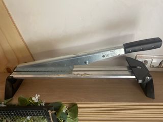 Guillotina profesional para cortar madera. Modelo LC 600. - Cuchilla de corte afilada. - Base metálica resistente. - Mango ergonómico para un mejor agarre.